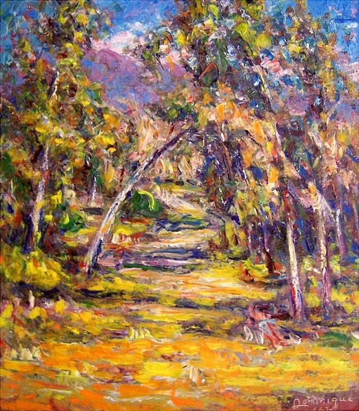 John A. Dominique (1893-1994) Biography (Click on thumbnails for details) In a Montecito Garden Bright Day, Matilija Creek Rocks & Creek Autumn Impressions Near Santa Barbara Matilija Creek Sycamores Rainy Day October Day Samarkand Sunlit Pathway Ward Estate Bright Day Spreading Oak Santa Barbara Matilija Lake Creek Scene Near Montrose Trees & Stream Sunset Glow Sespe Creek Oaks near OjaiI Lone Cypress Bird Refuge Matilija Reflections Pt. Lobos Mt. Hood Evening Heavy Surf Eucalyptus, Montecito Matilija Autumn Abstract Ventura River Topa Topa Mountains Red & Blue Santa Barbara Coast Creation Improvisation #18 Mountains and Clouds Near Santa Barbara Improvisation Sunset, Pt. Lobos Abstract Three Trees